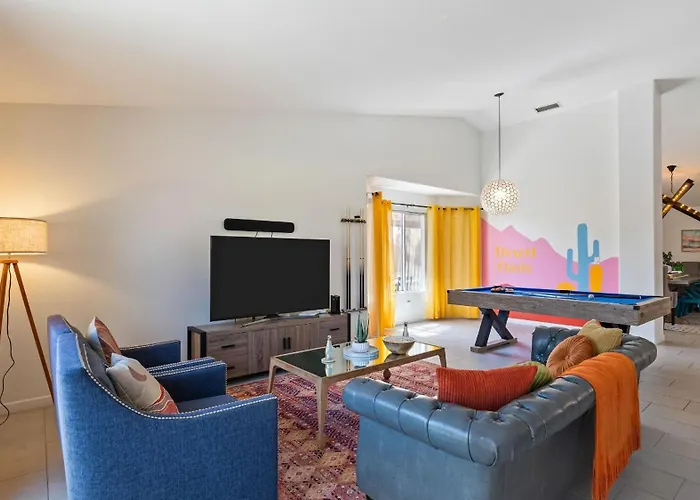An equipped kitchen, along with an outdoor dining area, are available for dining. Guests can also make use of a toaster, a cooktop, and kitchenware to prepare their own meal. Vintage Coffee House, serving a wide range of meals, is 16 minutes' walk away. The closest airport is Palm Springs International, which is 35 km from the La Quinta accommodation. For those who love sports, they can try darts.